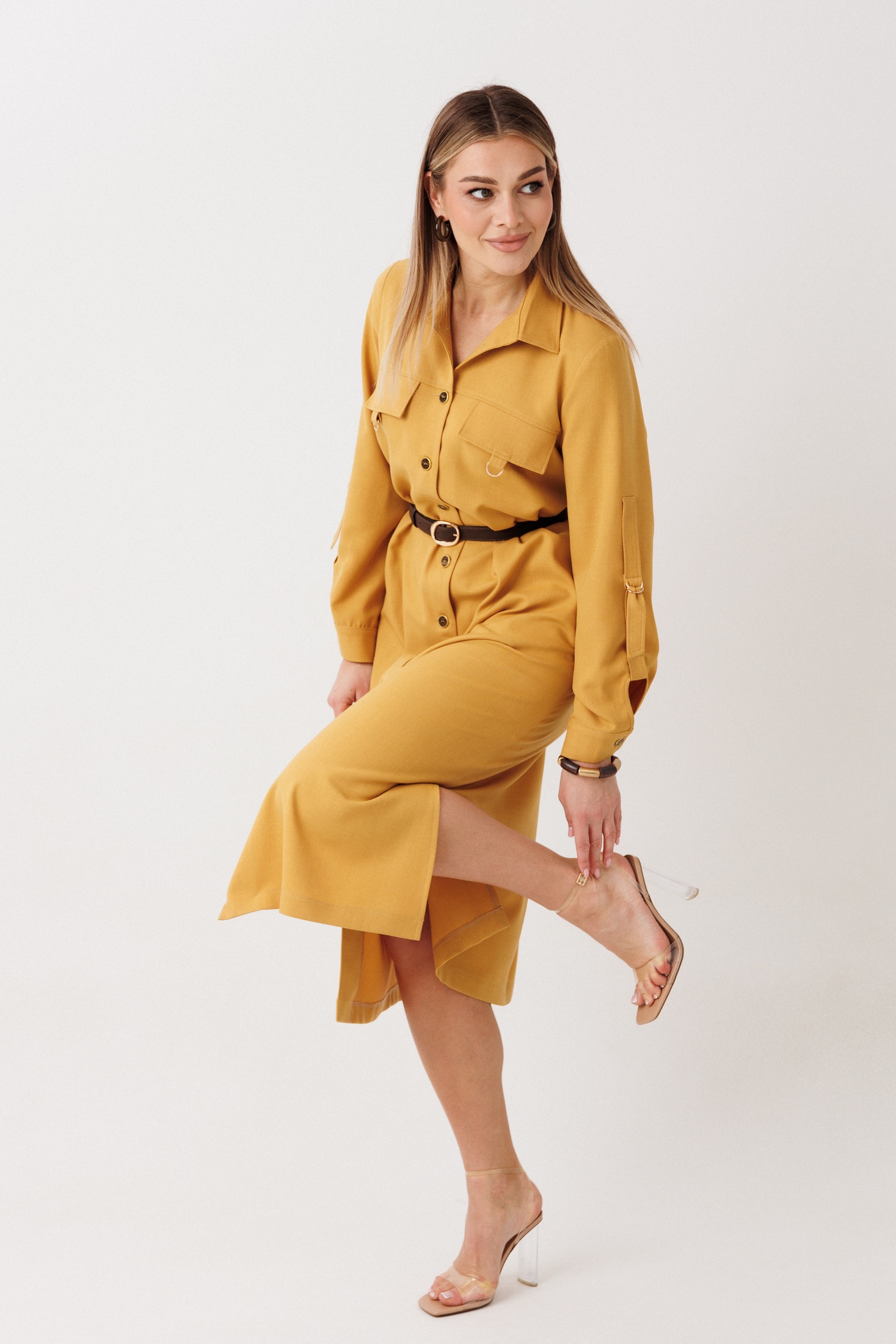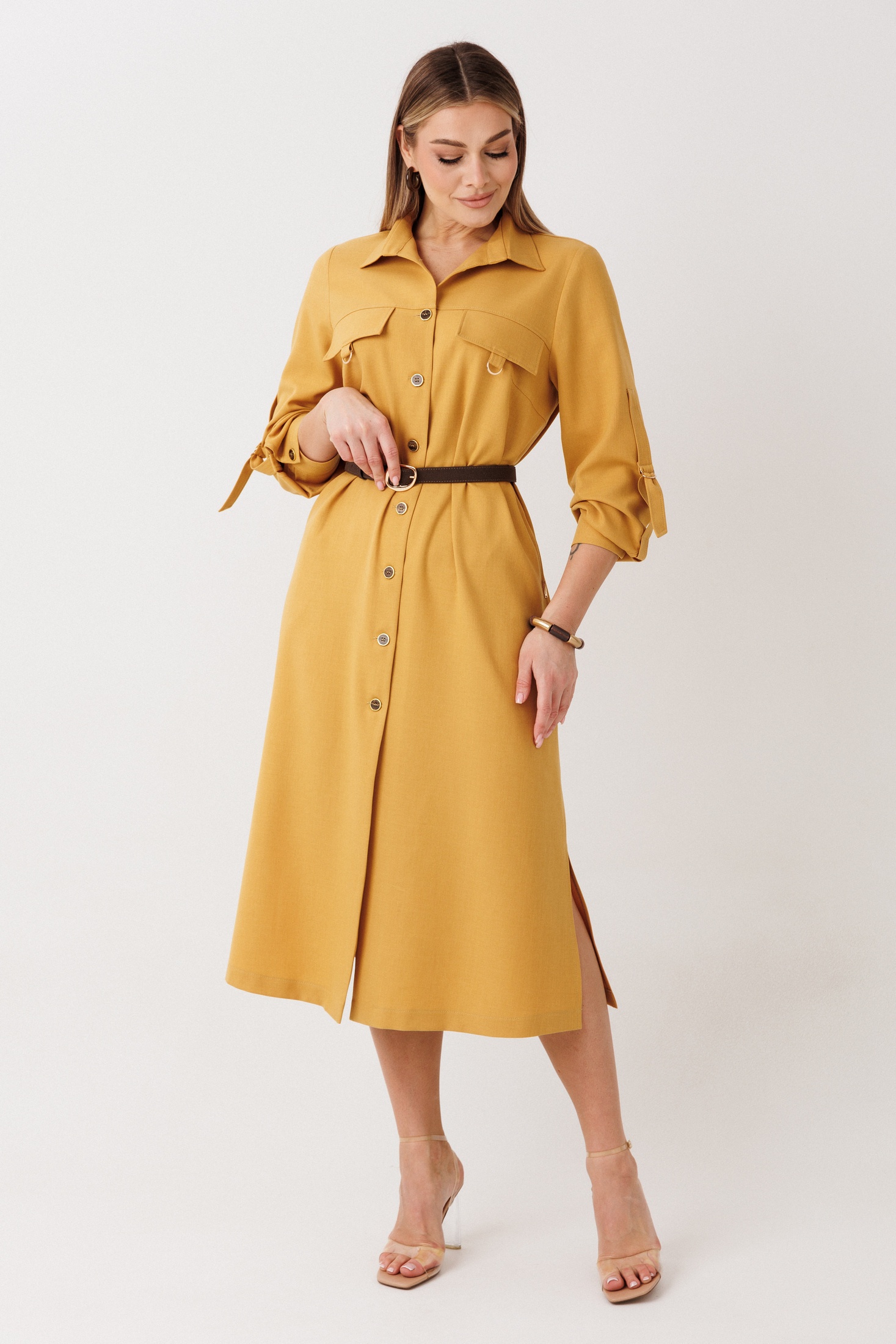 Платье 2442 горчица VeritaModa привлекает внимание своим стильным дизайном в стиле “сафари”. Коллекция бренда VeritaModa сочетает в себе утонченность и практичность. Это платье выполнено из плательной ткани с составом 70% полиэстер, 25% вискоза и 5% спандекс, обеспечивая комфорт и легкость. Прямой крой с чуть расширенным низом подчеркивает фигуру, а рубашечный воротник и длинные рукава на манжете с декоративной патой добавляют изящности. Декоративные карманы и разрезы в боковых швах делают это платье идеальным выбором для повседневного стиля, весной и осенью. Горчичный цвет придает наряду яркость и актуальность.