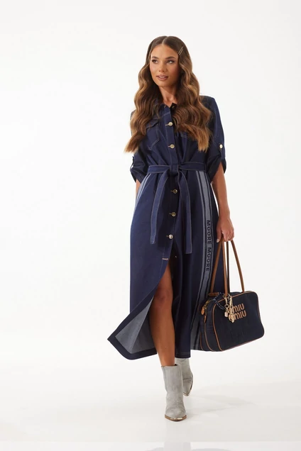 Платье из ткани «джинс». Длина миди. Застежка по