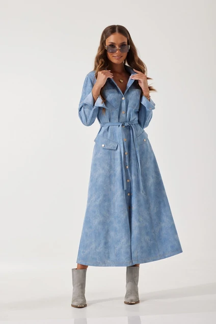 Платье из джинсовой ткани. Длина макси. Застежка по