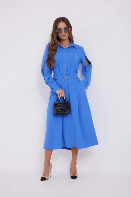 миди. Воротник рубашечный. Застежка по переду на кнопки. Длина застежки до