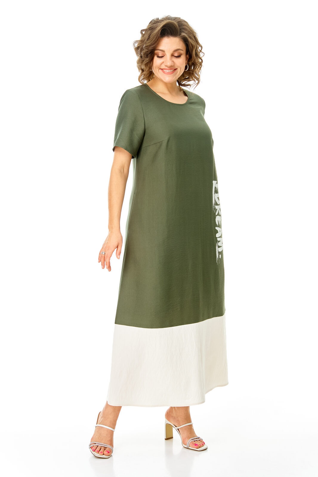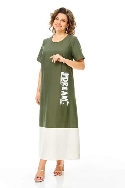 Платье 1252 оливка + молоко VI ORO