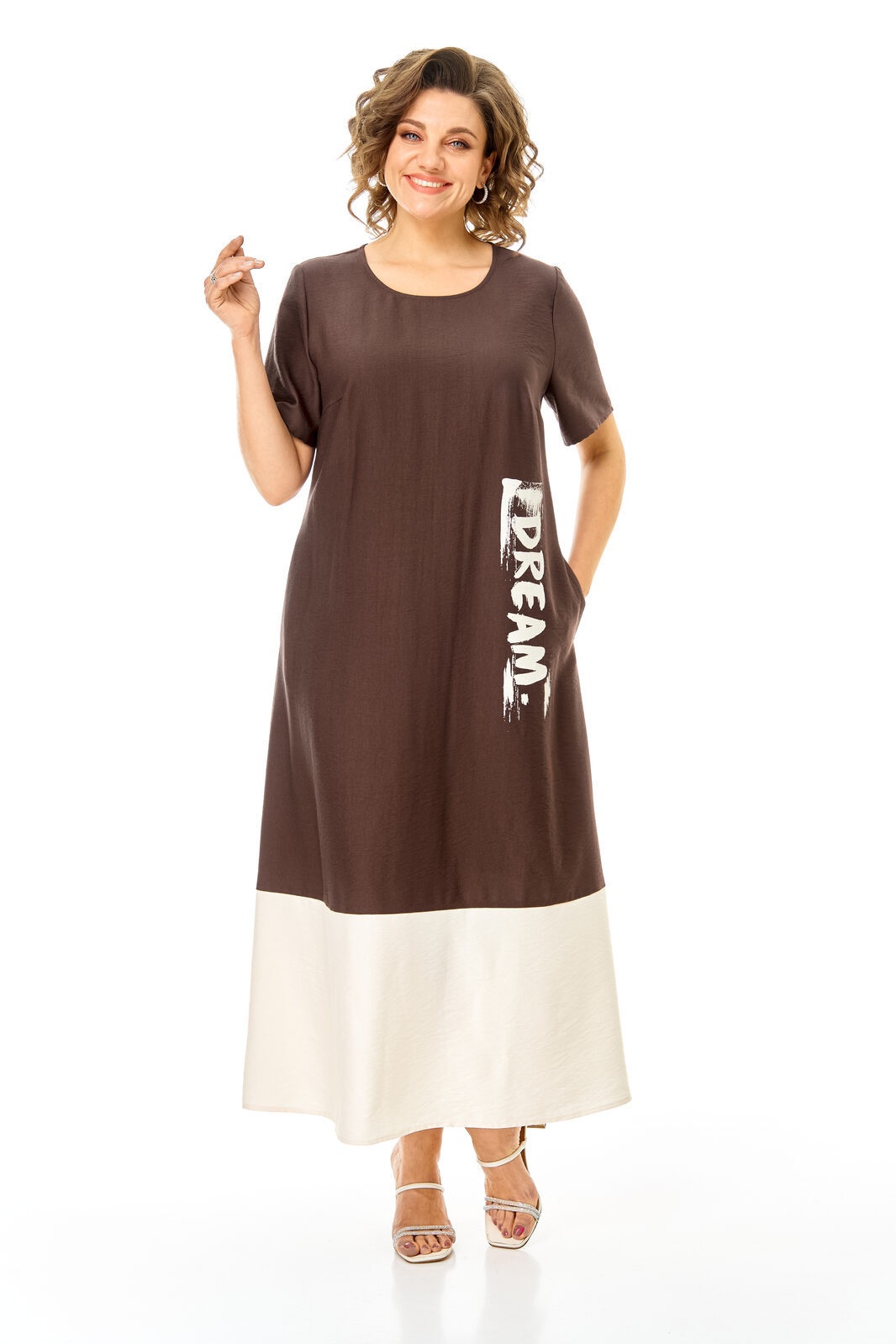 Платье 1252 шоколад + молоко VI ORO – это стильное женское платье А-образного силуэта, идеально подходящее для повседневного образа. Коллекция бренда VI ORO использует высококачественную вискозу с добавлением нейлона, обеспечивая комфорт и мягкость. Платье средней длины, с короткими одношовными рукавами, горловина округлой формы. Контрастные цвета – шоколад и молоко – делают его уникальным и стильным. В среднем шве спинки предусмотрена застежка на тесьму-молнию, а боковые карманы добавляют практичности. Легкий и универсальный материал подходит для теплого сезона. Идеально для отдыха и комфортных ежедневных прогулок.