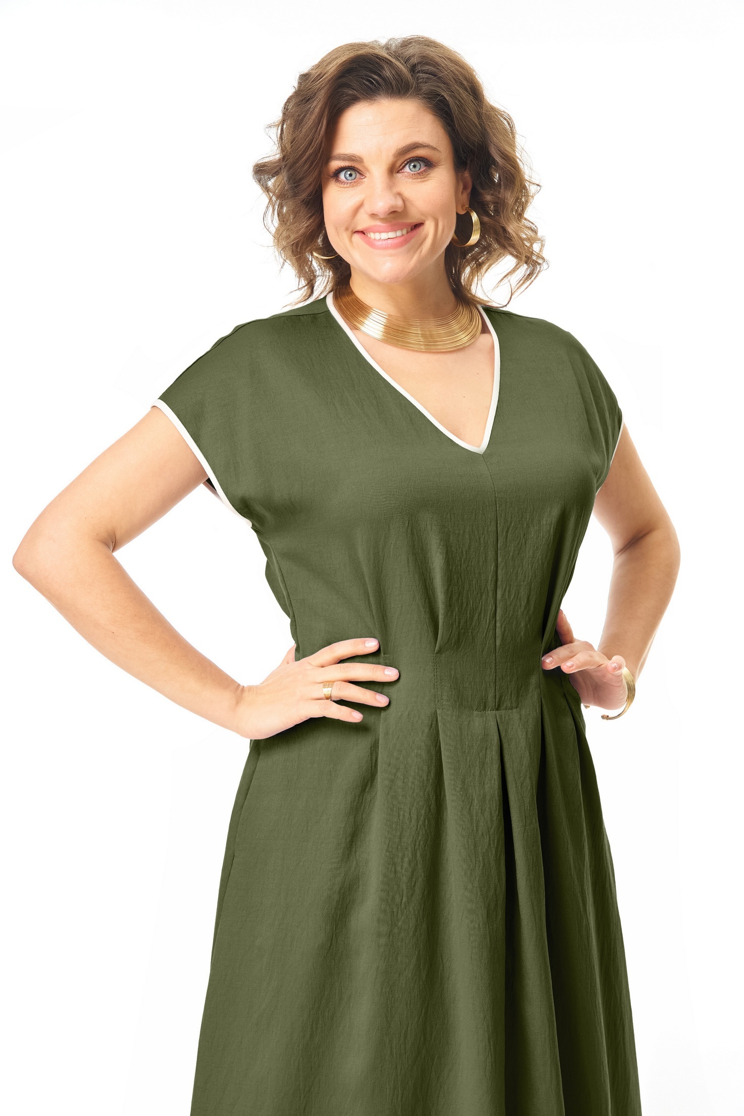 Платье 1258 оливка VI ORO покоряет своей универсальностью и стилем. Коллекция бренда VI ORO представляет изделие из мягкой вискозы с добавлением нейлона, обеспечивающее комфорт в носке. А-образный силуэт с спущенной линией плеча и рукавом "летучая мышь" добавляют образу легкость и непринужденность. Округлая горловина и застежка на молнию по спинке подчеркивают изящество. Ассиметричные подрезы с кантами и боковые карманы привносят модные акценты. Окантовка контрастного цвета завершает образ. Платье подходит для весеннего и летнего сезона, идеально для повседневных встреч и вечерних прогулок. Оливковый цвет придаст изюминку вашему гардеробу.