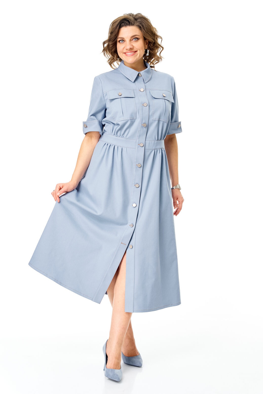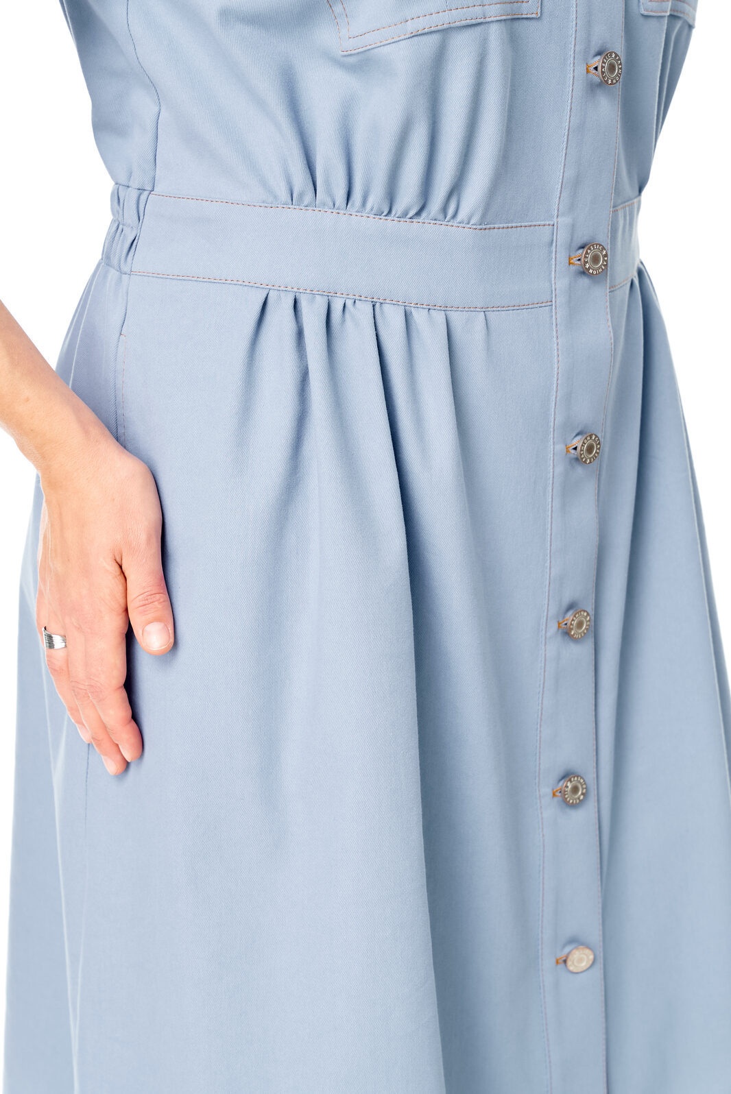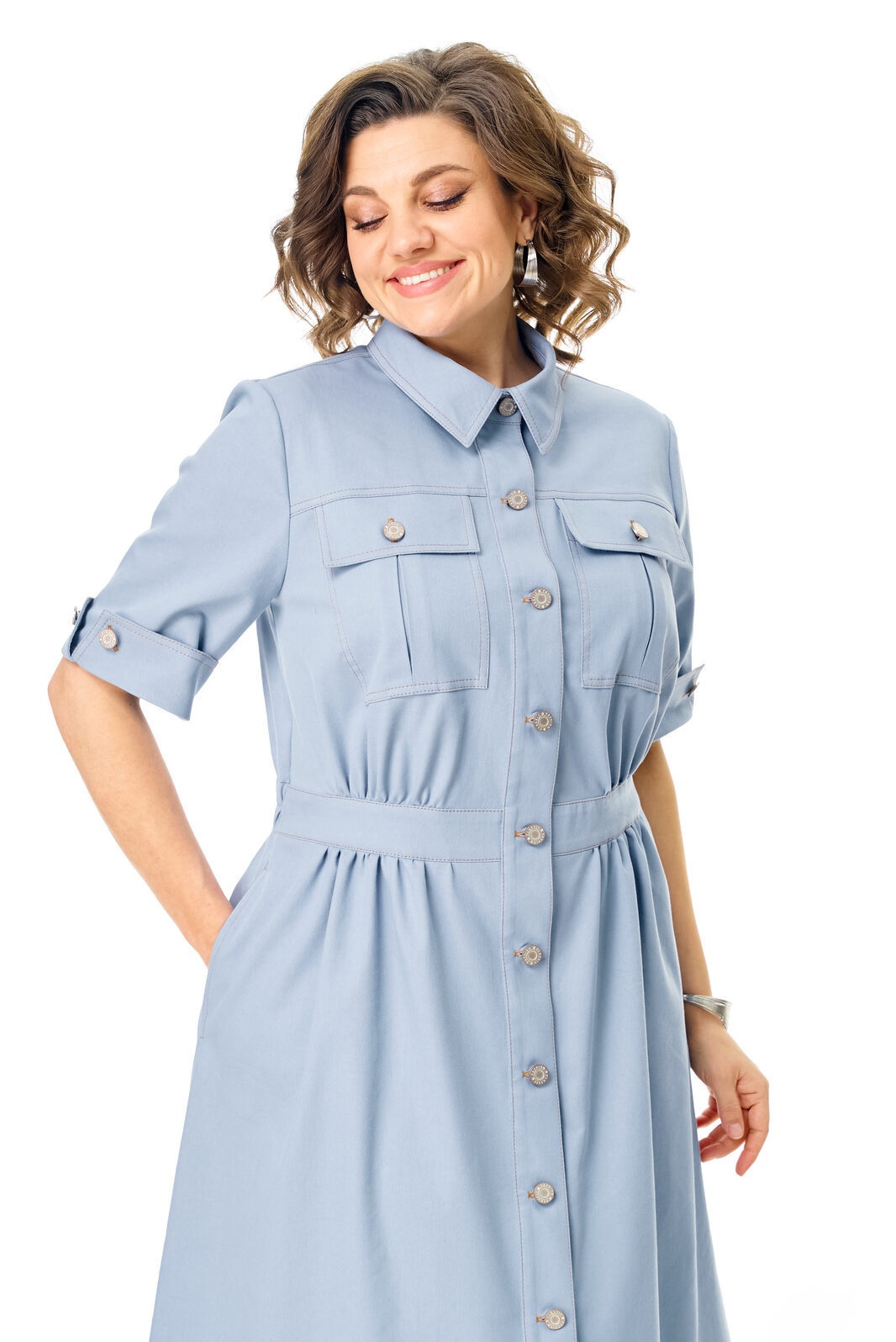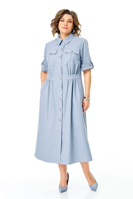 Платье 1263 голубой дым VI ORO воплощает в себе элегантность и практичность. Коллекция бренда VI ORO предлагает изделие из качественного материала, сочетание хлопка и вискозы обеспечивает комфорт и приятные тактильные ощущения. Полуприлегающий силуэт с легким расширением к низу подчеркивает фигуру, а накладные карманы с клапанами добавляют функциональности. Удобная застежка на пуговицы и отложной воротник делают платье идеальным выбором для офисного стиля. Эстетика изделия дополнена контрастными строчками и короткими рукавами с манжетами. Нежный голубой оттенок придаёт образу легкость и свежесть, что делает платье идеальным для весенне-летнего сезона.