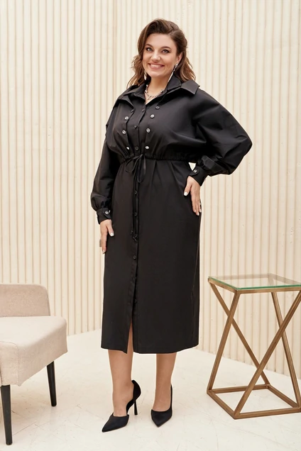 Очень лаконичное и стильное платье, которое определённо привлечёт к себе внимание. Данная модель стройнит, вытягивает силуэт, подчеркивает достоинства фигуры, а чёрный цвет всегда остаётся актуальным.