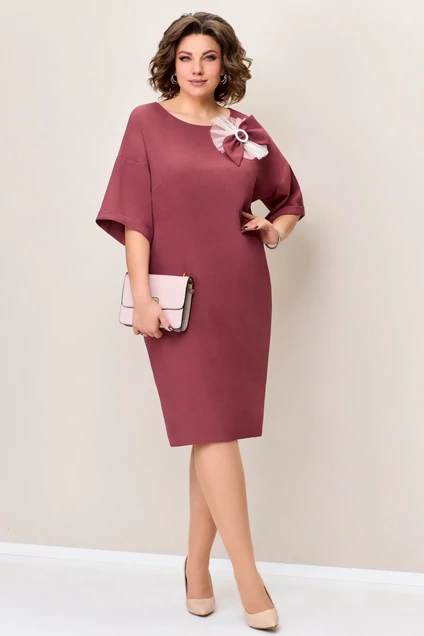 Нарядное платье полуприлегающего силуэта из стрейчевого текстиля. Рукав платья на цельнокроеной основе. Длина платья- 99 см по центру спинки. Украшение- брошь в комплекте изделия..