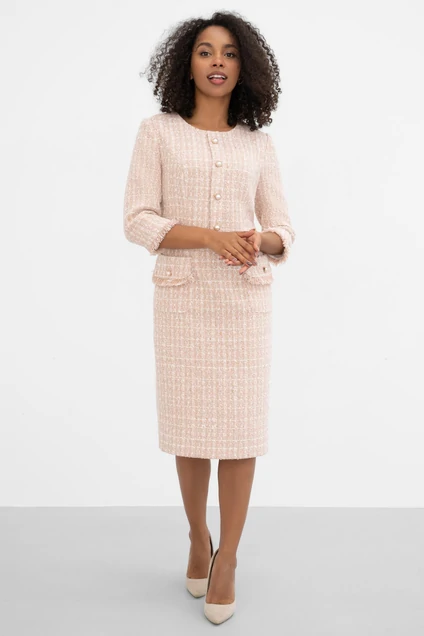 Лаконичный фасон и женственность – две важные особенности. Именно этими словами можно охарактеризовать это платье в стиле Шанель, которое будет актуально всегда. Платье женское, полуприлегающего силуэта, на подкладке, для повседневной носки.