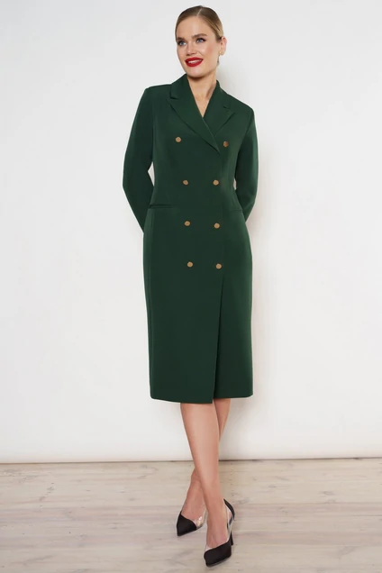 Элегантное и изысканное платье-жакет - это воплощение утонченного стиля и безупречного вкуса. Это платье - универсальный наряд для деловых встреч, званых ужинов и торжественных мероприятий. Платье женское полуприлегающего силуэта, длиной ниже уровня линии колена. Платье предназначено для повседневной носки.