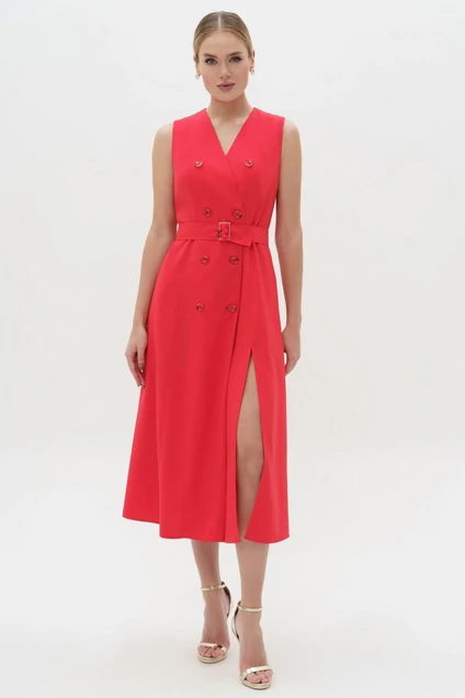 Это платье - настоящее воплощение легкости и свободы. Изготовленное из тонкой льняной ткани, оно идеально подходит для жарких летних дней. Это платье создано для того, чтобы вы могли наслаждаться летом с комфортом. Платье женское полуприлегающего силуэта для повседневной носки в летний период. Перед со смещенной застежкой на 3 петли и пуговицы, остальные пуговицы несут декоративную функцию (размер и цвет фурнитуры может незначительно отличаться от фото), длиной миди. В комплект к платью идет съемный пояс. В боковых швах обработаны карманы.