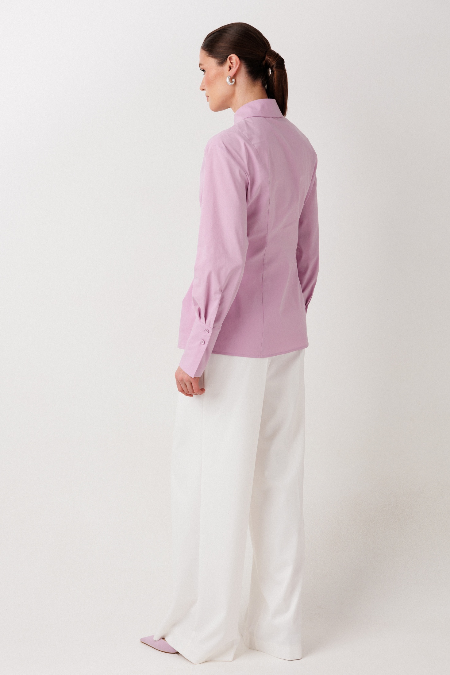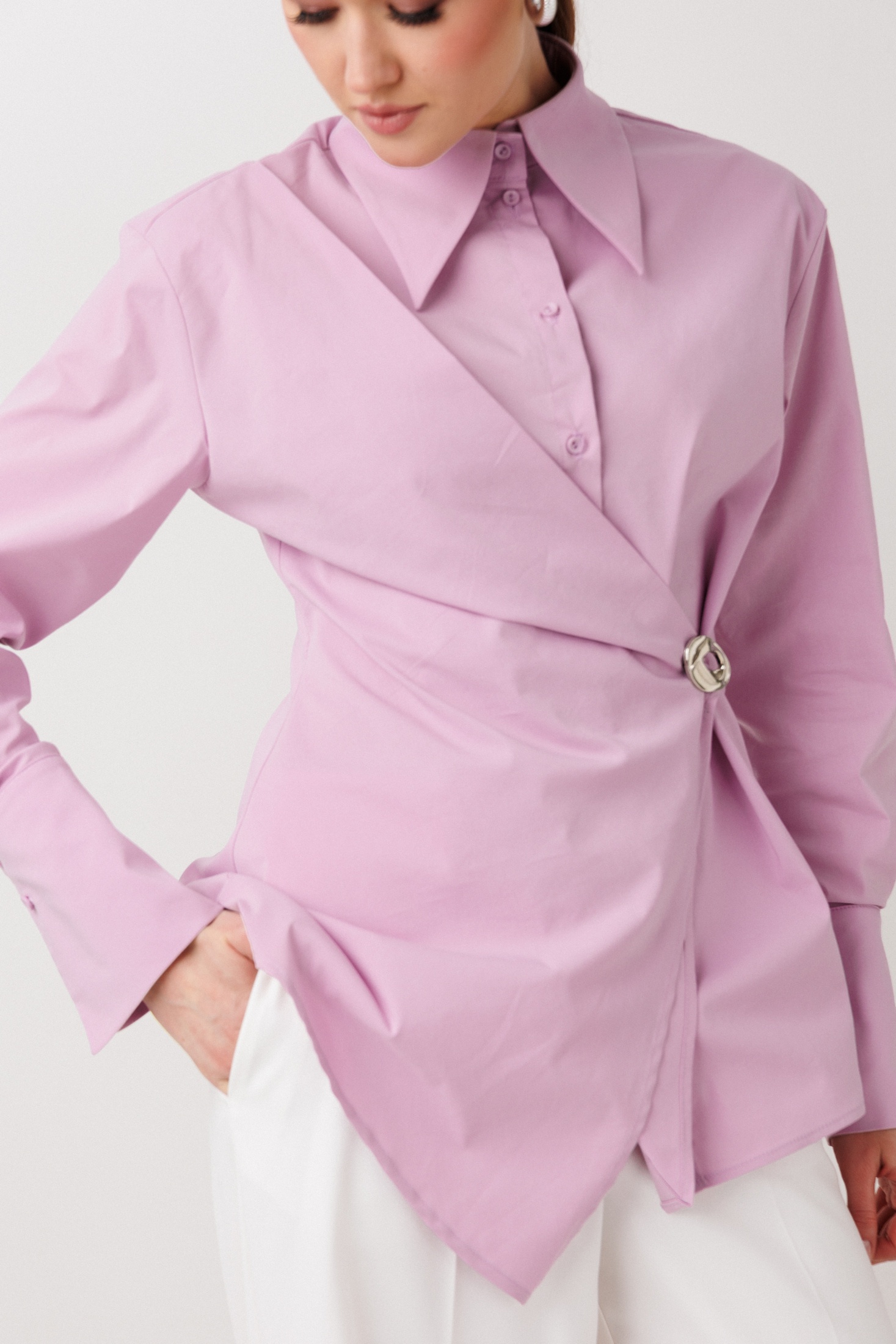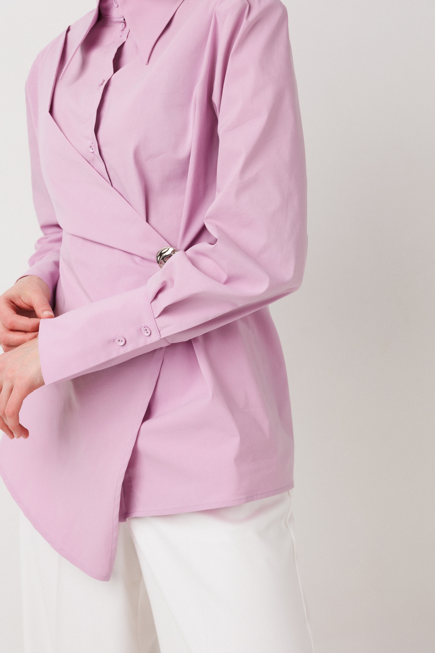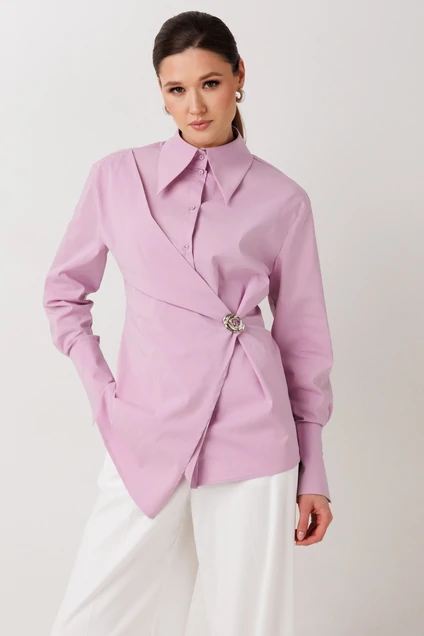 Рубашка 1027 сиреневый ERTANNO — стильная женская модель, предлагающая утонченный взгляд на классический стиль. Коллекция бренда ERTANNO отличается приталенным силуэтом, гармонично подчеркивающим фигуру. Изготовленная из сочетания хлопка, полиэстера и эластана, рубашка предлагает отличную воздухопроницаемость и эластичность. Складка спереди, дополненная съемной брошью, придает модели динамичность и оригинальность. Цвет — нежный сиреневый. Длинные рукава и классический воротник обеспечивают строгий и в то же время современный внешний вид. Со спущенной линией плеча и широкими манжетами, эта рубашка идеально подходит для офисного или повседневного образа. Длина ниже линии бедер делает её универсальной, позволяя сочетать её с разными элементами гардероба.