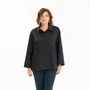 Утонченная хлопковая рубашка черного цвета выполнена в свободном силуэте, подчеркивающем изысканность линий и дарящем комфорт при носке. Особенный акцент создает деталь на планке спереди, имитирующая галстук, придающая образу выразительность и неповторимый стиль. Рукава 7/8 с широкими отворотами гармонично дополнены спущенной линией плеч, подчеркивающей расслабленный и современный крой. Отрезная кокетка на спине добавляет изделию динамичности и элегантности. Разрезы по бокам украшают силуэт, обеспечивая дополнительную свободу движений. Рубашка подходит для создания как деловых, так и повседневных стильных образов. Длина изделия варьируется в зависимости от размера, обеспечивая идеальную посадку: - для размеров 48-52, длина составляет 71 см, а длина рукава — 50 см; - для размеров 54-58, длина увеличивается до 72,5 см, а длина рукава — до 53 см. Эта рубашка — идеальный выбор для тех, кто ценит комфорт, качество и стиль в одежде.