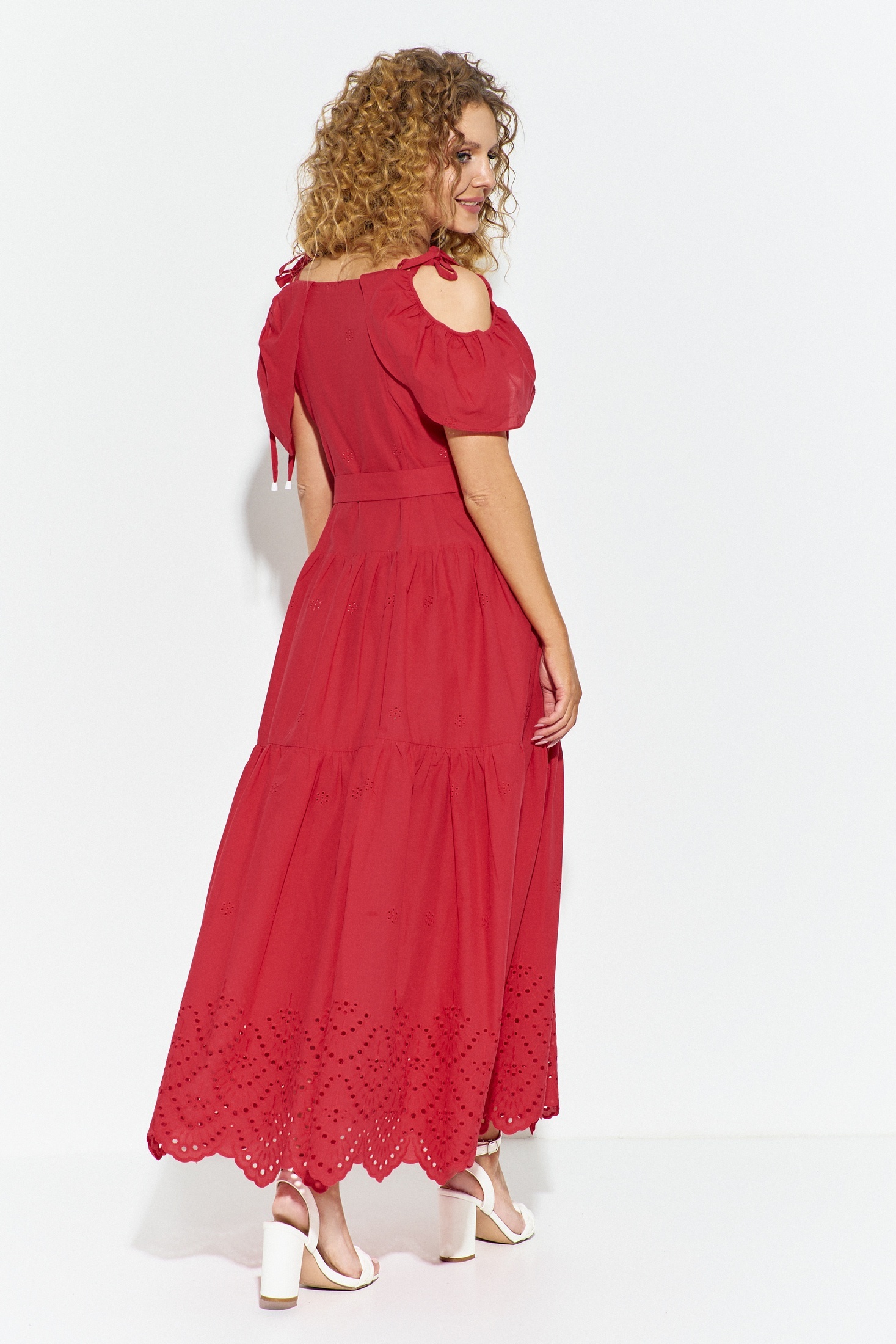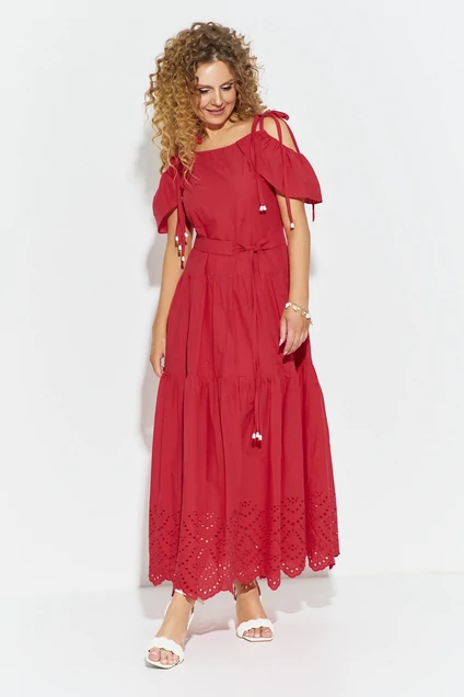 Сарафан 705 красный Euro Moda — идеальный выбор для летнего сезона. Коллекция бренда Euro Moda впечатляет женственными и легкими моделями. Сарафан выполнен из 100% хлопка, что обеспечивает комфорт и воздухопроницаемость в жаркие дни. Модель полуприлегающего силуэта со спущенным рукавом и завязками на плечах и талии создает романтичный образ. Воланы ярусами и ажурная вышивка с фестончатым краем добавляют изысканности, а пояс подчеркивает талию. Яркий красный оттенок делает вас заметной в любой ситуации. Этот наряд отлично подойдет для повседневного ношения и отдыха.