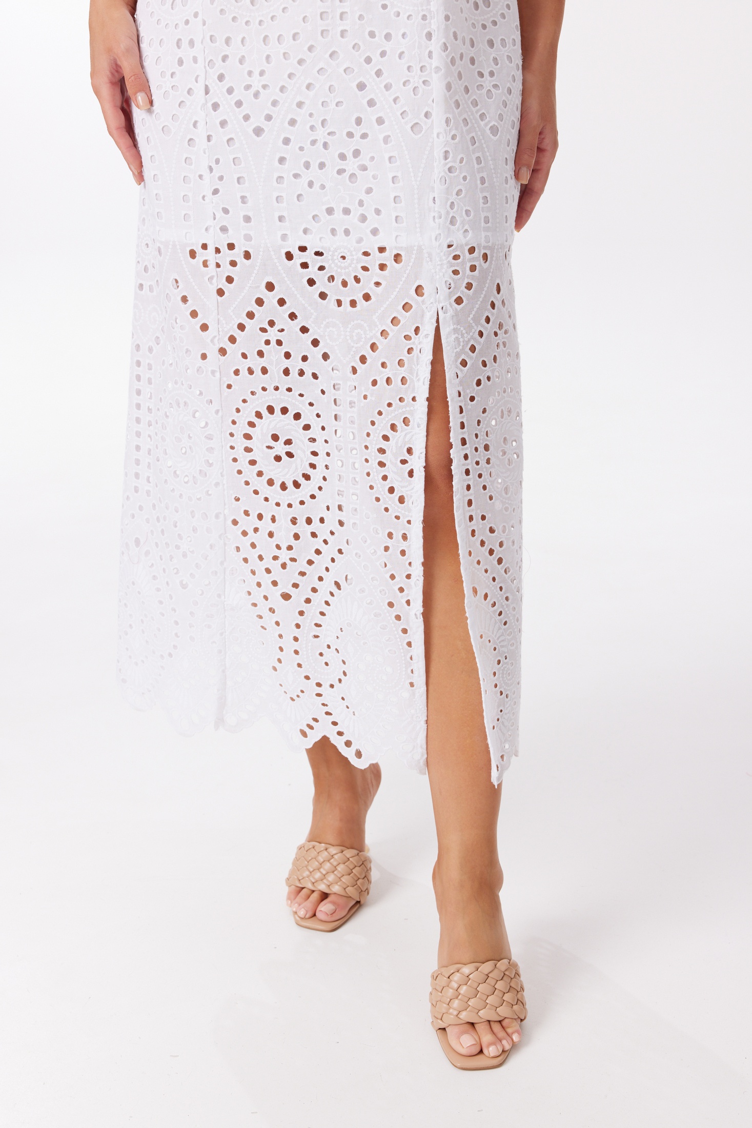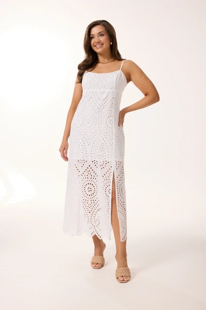 Сарафан 25ICY098 белый ICY Street — воплощение стиля и комфорта для летнего гардероба. Коллекция бренда ICY Street предлагает модель из плательной ткани Ришелье (100% хлопок), которая красиво подчеркивает фигуру благодаря ажурной вышивке. Сарафан миди длиной с элегантным разрезом на левом рельефном шве добавляет динамику. Лиф с рельефными швами обеспечивает идеальную посадку, а эластичная отстрочка на спинке адаптируется под объём груди. Регулируемые бретели позволяют настроить посадку по вашему желанию. Потайная молния на боку сохраняет изысканность линий. Белый цвет придаёт изделию свежий и лёгкий вид, что делает его идеальным для отпускных прогулок и городских выходов.