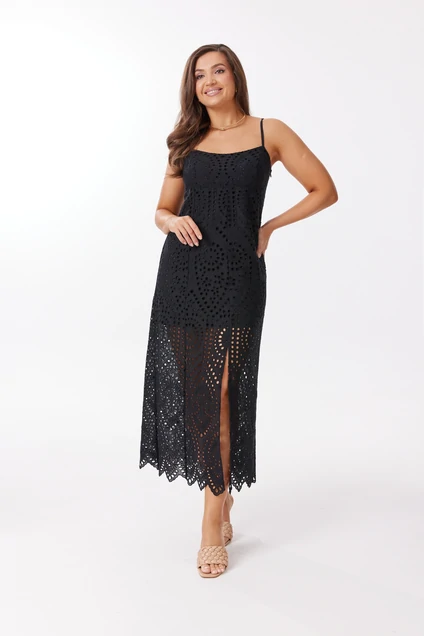 Сарафан 25ICY098 чёрный ICY Street покоряет своим полуприлегающим силуэтом. Коллекция бренда ICY Street предлагает изысканную модель из плательной ткани Ришелье, 100% хлопок, обладающую ажурной вышивкой, которая добавляет лёгкости. Модель средней длины подчёркивает фигуру благодаря отрезной линии под грудью и обеспечивает свободу движения. Чёрный цвет делает сарафан универсальным для любого события. Идеально подходит для летнего сезона и создания образа на каждый день. Регулируемые бретели и эластичная отстрочка на спинке делают посадку индивидуальной и комфортной.