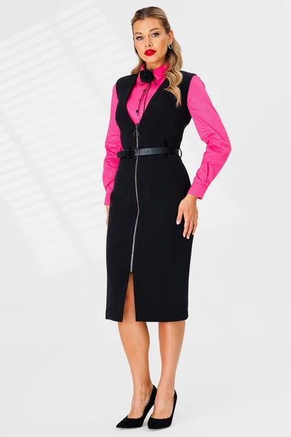 Безупречный set от брэнда "Мода-Юрс", состоящий из сарафана и блузы станет отличным дополнением делового гардероба.