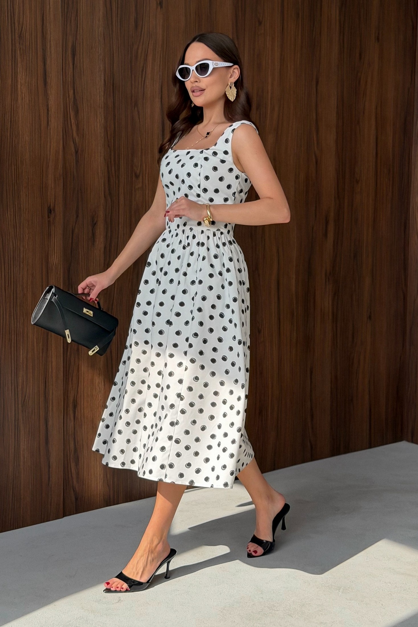 Сарафан 251-1 T.N.D – это стильное решение от бренда T.N.D., которое идеально подойдет для летних прогулок. Коллекция бренда предлагает элегантный сарафан из хлопковой ткани с рисунком в горошек, который обеспечивает комфорт даже в самые жаркие дни. Изделие отрезное по линии талии и оснащено широким втачным поясом, подчеркивающим фигуру. Свободная юбка создает воздушный образ, а потайная тесьма-молния по спинке обеспечивает удобство ношения. Глубокий округлый вырез по полочке и спинке добавляет легкости и женственности. Модель выполнена в универсальном черно-белом цвете и прекрасно подходит для повседневного стиля. Дополните сарафан сандалиями или кедами для создания лёгкого летнего образа.