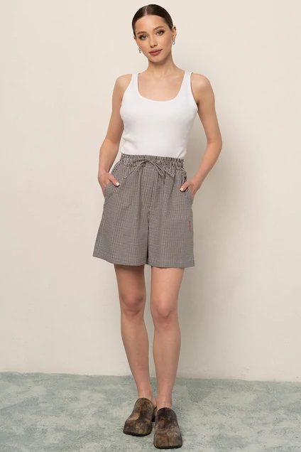 Шорты молодежные из однотонного полотна прямого силуэта, на притачном поясе с эластичной тесьмой и шнурком окантовка , наклонными карманами спереди,иммитацией гульфика.
