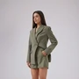 Шорты женские короткие, выполнены из костюмной ткани. Шорты на подкладке. Застежка на тесьму-молнию. Пояс притачной со шлевками, застегивается на петлю и пуговицу. По передним полотнищам прорезные карманы. Длина изделия по боковому шву 41 см. Шорты составят стильный образ с жакетом М652.