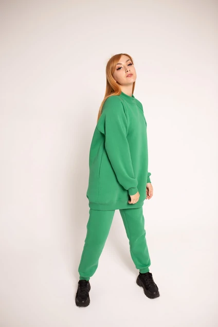 Костюм женский ФС-25. Штаны на резинке с карманами-листочкой + удлинённая толстовка без капюшона с карманами в боковых швах. Снизу и на запястьях толстовки кашкорсе, снизу штаны также отделаны кашкорсе.