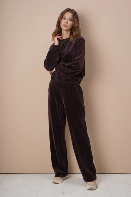 Завораживающий и неповторимо женственный спортивный костюм из велюра…Отличительная особенность таких моделей в текущем сезоне - сдержанный крой без лишней атрибутики, ведь велюр сам по себе материал с ярким характером и в украшательстве не нуждается. Брюки свободные, расширенные к низу, с боковыми карманами на эластичном поясе. Свитшот упрямленного покроя со слегка заниженной линией плеча. По низу изделия и рукавов - эластичная тесьма. На спинке трендовый лаконичный декор. Длина свитшота около 52 см. Длина рукава с плечом около 72 см. Длина брюк около 104 см.