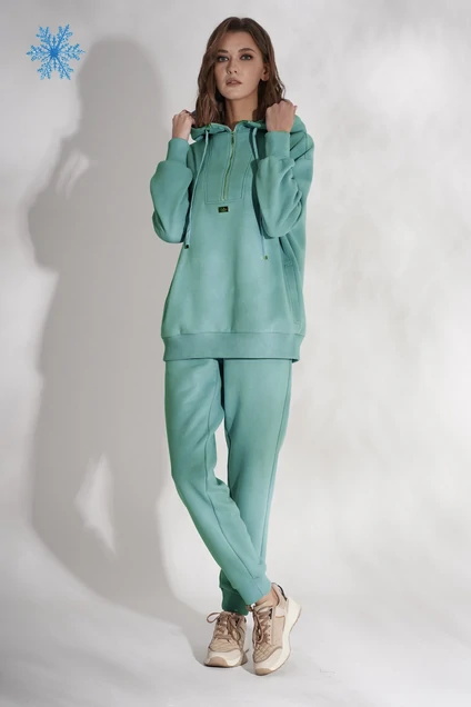 Еще не так давно нам казалось, что спорт и мода находятся в совершенно разных вселенных, а сейчас мы уверенно рассуждаем о том, какие спортивные костюмы в тренде. Мода на оверсайз все еще набирает обороты, причем безразмерным сразу стали и низ и верх. С приходом холодов комфортный хлопчатобумажный футер приобретает начес...и вуаля, в таком костюме вам не страшен любой мороз. Толстовка свободного покроя с заниженной линией плеча, комфортным свободным рукавом на манжете, боковыми вертикальными карманами с листочкой, капюшоном и удобной частичной застежкой на тесьму-молнию. Брюки с боковыми карманами на элатичном поясе и манжетой по низу. Длина брюк около 100 см. Длина толстовки около 70 см. Длина рукава с плечом коло 72 см.