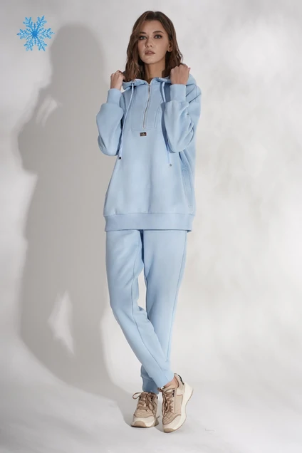 Еще не так давно нам казалось, что спорт и мода находятся в совершенно разных вселенных, а сейчас мы уверенно рассуждаем о том, какие спортивные костюмы в тренде. Мода на оверсайз все еще набирает обороты, причем безразмерным сразу стали и низ и верх. С приходом холодов комфортный хлопчатобумажный футер приобретает начес...и вуаля, в таком костюме вам не страшен любой мороз. Толстовка свободного покроя с заниженной линией плеча, комфортным свободным рукавом на манжете, боковыми вертикальными карманами с листочкой, капюшоном и удобной частичной застежкой на тесьму-молнию. Брюки с боковыми карманами на элатичном поясе и манжетой по низу. Длина брюк около 100 см. Длина толстовки около 70 см. Длина рукава с плечом коло 72 см.
