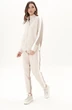 Комфортные брюки-джоггеры. Высокая посадка, боковой карман с листочкой, комфортный эластичный пояс с люверсами и отделочным шнуром. По низкам брюк - отрезной манжет. Длина брюк около 98 см.