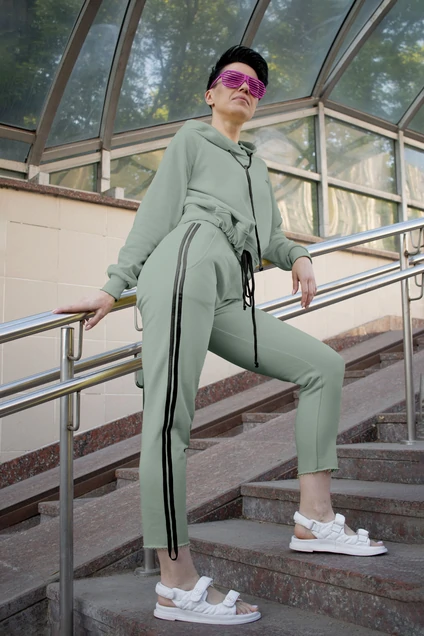 Комплект из хлопка премиум-качества! Худи свободного кроя, с проймой реглан, с планкой по низу на шнуровку и удобным капюшоном. Брюки, прилегающие по фигуре с лампасами в боковых швах, с карманами и притачным поясом на резинке.