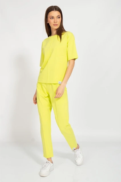 Костюм с брюками средней посадки с отделкой в виде канта по деталям переда и карманами в боковых швах и классическим джемпером с отделкой по переду. Ткань 2-х ниточный футер с изнанкой из хлопка, качество Пенье, плотность 235 г.м2