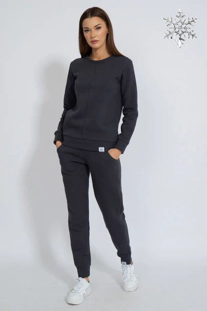 Костюм утепленный на флисе. Свитшот с принтом либо отделкой по переду. Брюки модели средней посадки зауженные к низу с карманами в боковых швах. Обработка низа брюк манжета. Ткань футер (3-х ниточный) с внутренним слоем утепленным начесом, качество Пенье, плотность 380 г.м2