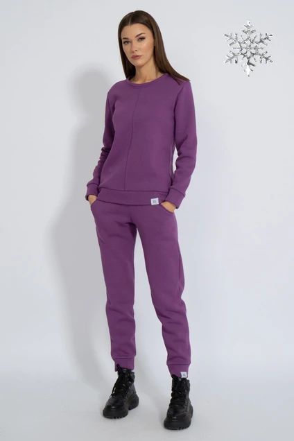 Костюм утепленный на флисе. Свитшот с принтом либо отделкой по переду. Брюки модели средней посадки зауженные к низу с карманами в боковых швах. Обработка низа брюк манжета. Ткань футер (3-х ниточный) с внутренним слоем утепленным начесом, качество Пенье, плотность 380 г.м2