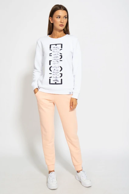 Костюм. Классический свитшот с нанесенной апликацией либо цифровой печатью. Брюки средней посадки зауженные к низу с карманами в боковых швах. Обработка низа брюк манжета. Ткань футер 3-х ниточный с внутренним слоем на петельной основе, качество Пенье, плотность 315 г.м2. Максимально качетвенная ткань c софт текстурой наружной и фнутренней стороны ткани.