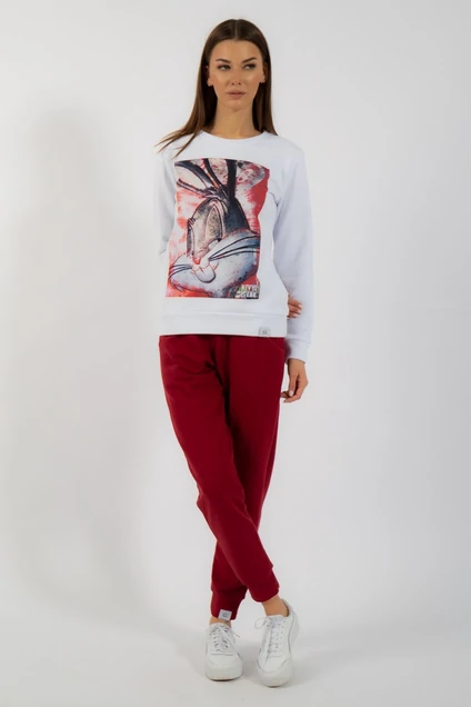 Костюм. Классический свитшот с нанесенной апликацией либо цифровой печатью. Брюки средней посадки зауженные к низу с карманами в боковых швах. Обработка низа брюк манжета. Ткань футер 3-х ниточный с внутренним слоем на петельной основе, качество Пенье, плотность 315 г.м2. Максимально качетвенная ткань c софт текстурой наружной и фнутренней стороны ткани.