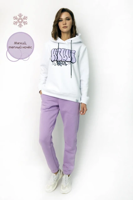 Костюм Classic, утепленный на флисе с нанесением принта. Худи Classic модели 4055 с капюшоном на подкладке из основной ткани, с карманами в боковых швах. Брюки модели 4053 средней посадки зауженные к низу с карманами в боковых швах. Обработка низа брюк резинка. Ткань футер (3-х ниточный) с внутренним слоем утепленным начесом, качество Пенье, плотность 395 г.м2