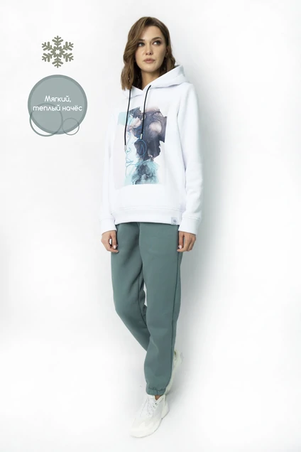 Костюм Classic, утепленный на флисе с нанесением принта. Худи Classic модели 4055 с капюшоном на подкладке из основной ткани, с карманами в боковых швах. Брюки модели 4053 средней посадки зауженные к низу с карманами в боковых швах. Обработка низа брюк резинка. Ткань футер (3-х ниточный) с внутренним слоем утепленным начесом, качество Пенье, плотность 395 г.м2