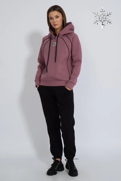 Костюм утепленный на флисе. Худи с рукавом реглан с капюшоном на подкладке из основной ткани, элементы обработки кантом. Брюки модели 4053 средней посадки зауженные к низу с карманами в боковых швах. Обработка низа брюк резинка. Ткань футер (3-х ниточный) с внутренним слоем утепленным начесом, качество Пенье, плотность 380 г.м2