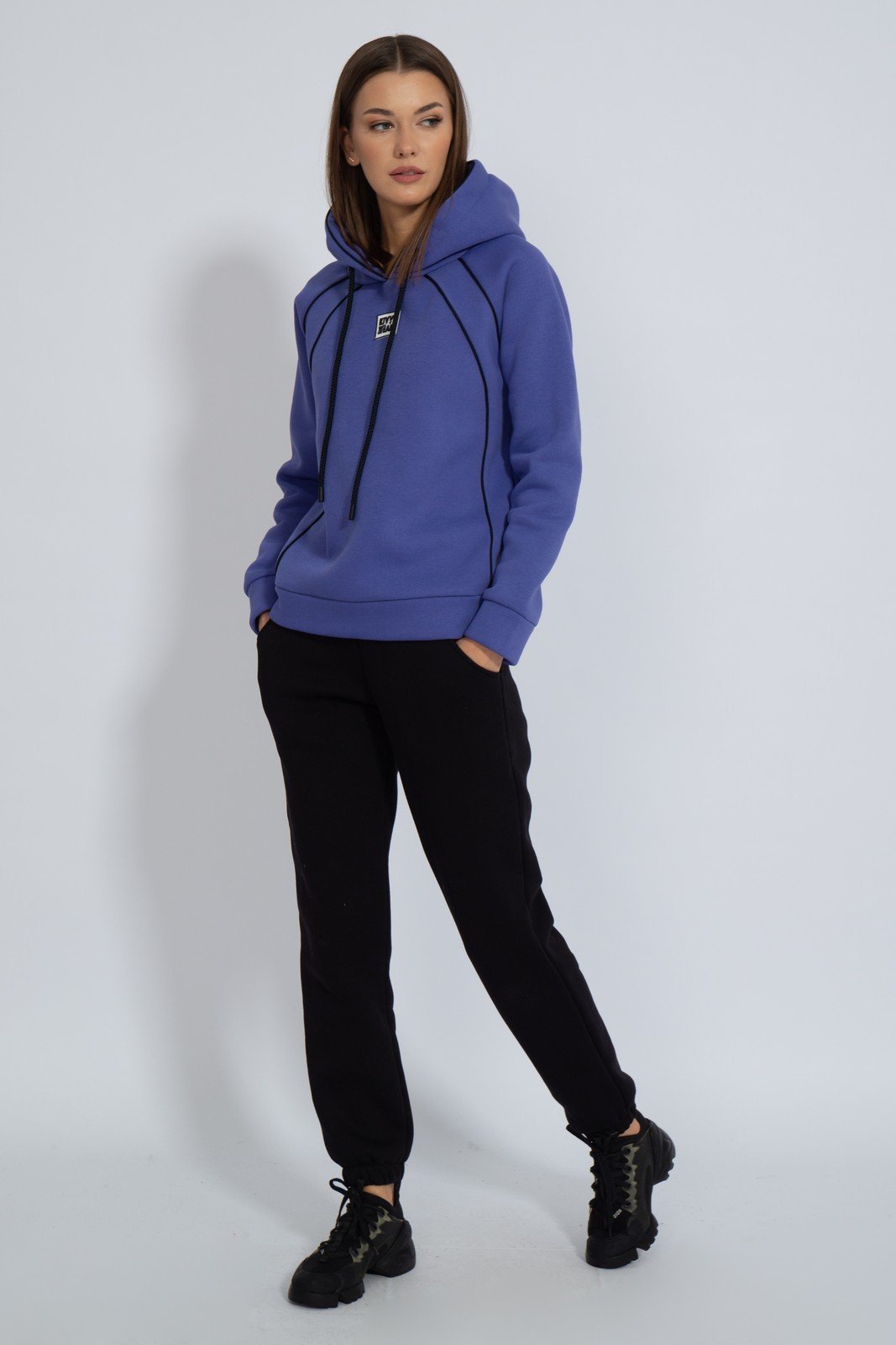 Костюм утепленный на флисе. Худи с рукавом реглан с капюшоном на подкладке из основной ткани, элементы обработки кантом. Брюки модели 4053 средней посадки зауженные к низу с карманами в боковых швах. Обработка низа брюк резинка. Ткань футер (3-х ниточный) с внутренним слоем утепленным начесом, качество Пенье, плотность 380 г.м2