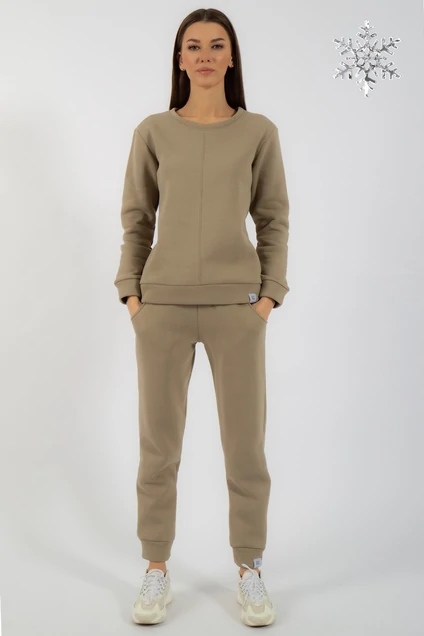 Костюм утепленный на флисе. Свитшот с принтом либо отделкой по переду. Брюки модели средней посадки зауженные к низу с карманами в боковых швах. Обработка низа брюк манжета. Ткань футер (3-х ниточный) с внутренним слоем утепленным начесом, качество Пенье, плотность 380 г.м2