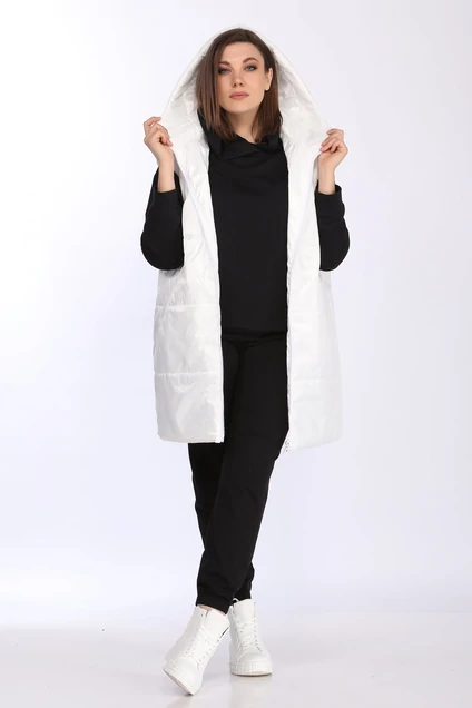 Стильный спортивный комплект тройка. Стильный Удлиненный стеганный жилет свободного силуэта с капюшоном, прорезные карманы с листочкой, по низу регулируемая кулиса. Утеплитель «ISOSOFT» 120 г. на метр кв. Застежка молния.