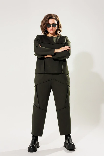 Стильный женский костюм, состоящий из джемпера и брюк, выполнен из трикотажного полотна (тянется).