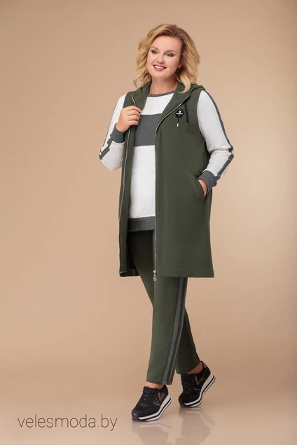 Спортивный костюм 1295 олива+белый+серый Svetlana Style
