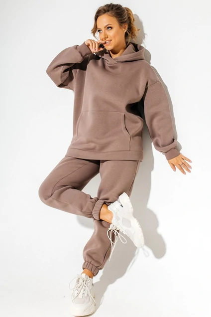 Трикотажный спортивный женский костюм оверсайз из высококачественного теплого футера класса Пенье состоит из худи(рукав реглан) и брюк джоггеров с высокой посадкой . Объемный двойной капюшон отлично держит форму, функциональный карман кенгуру, манжеты рукавов из довяза(кашкорсе). Брюки с высокой посадкой на резинке без шнурка, низ на резинке с боковыми карманами. Премиальное качество.