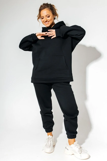 Трикотажный спортивный  женский костюм оверсайз из высококачественного теплого футера класса Пенье состоит из худи(рукав реглан) и брюк джоггеров с высокой посадкой . Объемный двойной капюшон отлично держит форму, функциональный карман кенгуру, манжеты рукавов из довяза(кашкорсе). Брюки  с   высокой посадкой на резинке без шнурка, низ на резинке с боковыми карманами. Премиальное качество.