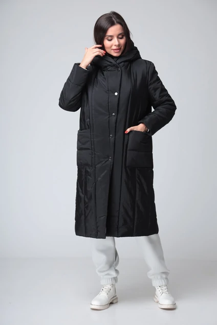 Черное стеганное пальто с утепленным костюмом в стиле «спорт-шик»!