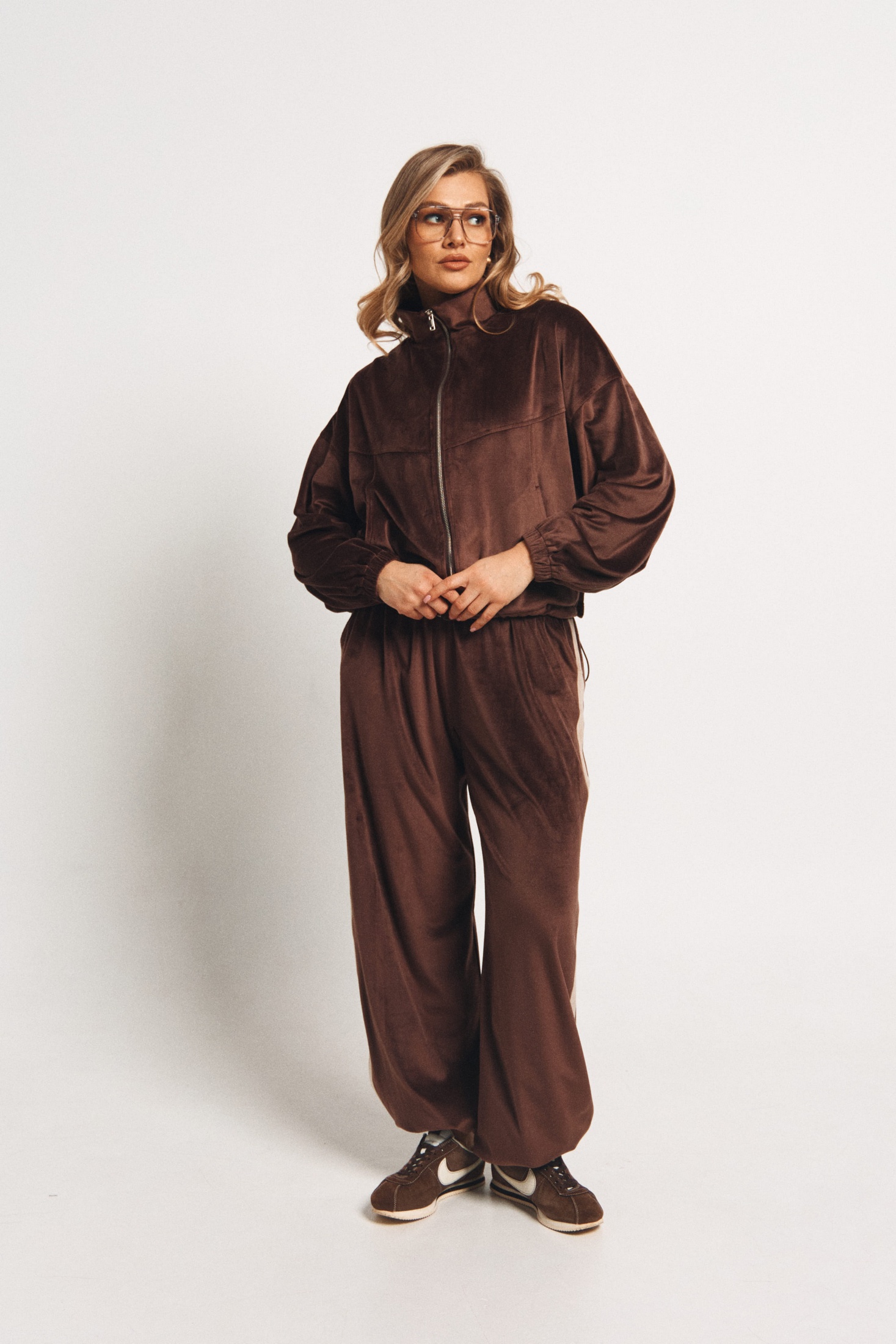 Спортивный костюм 2449 шоколад VeritaModa — это идеальный выбор для создания стильного образа. Коллекция бренда VeritaModa предлагает вам комфорт и функциональность, сочетающиеся в одном комплекте. Костюм выполнен из мягкой велюровой ткани, которая приятна на ощупь и сохраняет форму. Джемпер oversize с воротником-стойкой и молнией, дополнен резинкой на низе рукава и регулируемой кулисой. Брюки прямого кроя также имеют регулировку внизу, что делает их универсальным решением для прогулок и отдыха. Костюм в классическом спортивном стиле, подходит для весенне-осеннего сезона. Шоколадный цвет добавляет образу элегантности, а боковые карманы обеспечивают удобство.