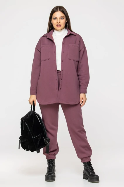 Базовый спортивный костюм, тёплый, идеален для осени и зимы. Спортивный костюм оверсайз выполнен из высококачественного, тёплого, плотного трикотажа с начёсом. Материал изделия очень мягкий. Теплый женский костюм состоит из куртки прямого силуэта, с втачным рукавом без капюшона, дополненный двумя нагрудными карманмаи. В комплекте идут брюки с высокой посадкой, с поясом на широкой резинке и с боковыми карманами. Для большего комфорта и теплоизоляции, низ спортивных штанов выполнен с эластичной резинкой.