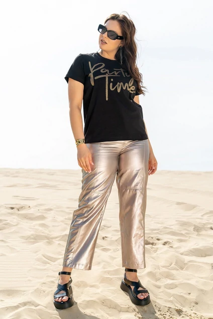 Блузкка майка с круглым вырезом горловины, с печатью по полочке, с короткими рукавами.