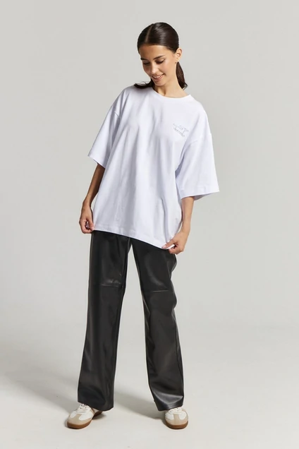 Футболка прямого свободного кроя с принтом, выполнена из хлопкового полотна.