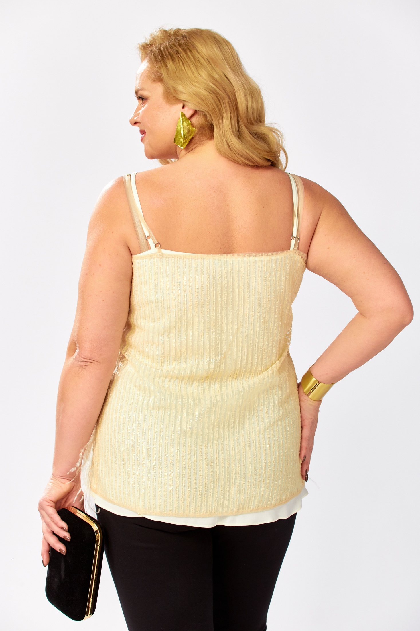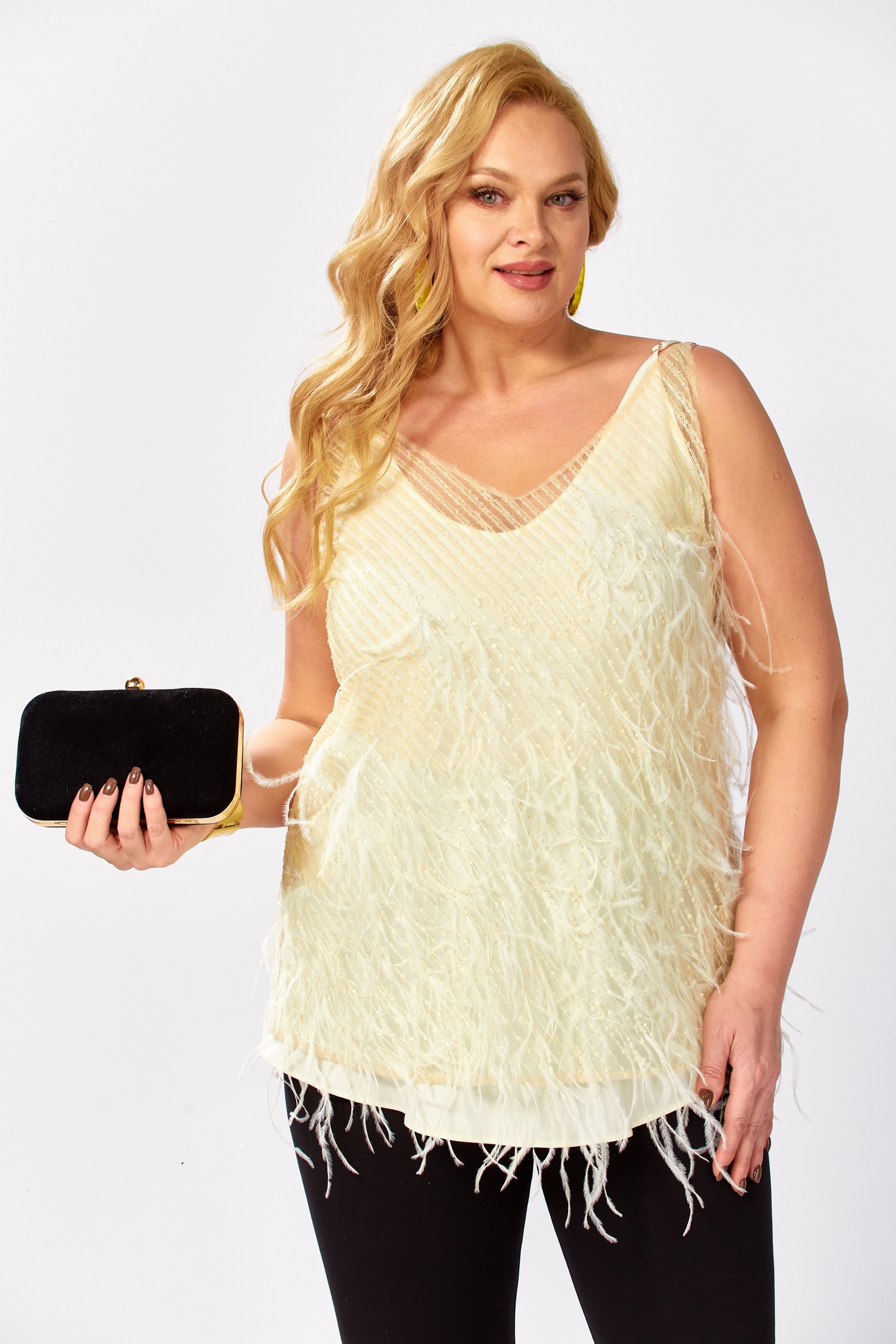 Топ 0349-2 AVENUE – это уникальное сочетание стиля и комфорта для вашего гардероба. Коллекция бренда AVENUE предлагает элегантный топ на регулируемых бретелях с полуприлегающим силуэтом. Выполненный из двух слоев, верх из сетки с вышивкой и пайетками, а нижний из мягкой вискозы. Такое сочетание позволяет носить каждый слой отдельно, создавая различные образы. Подойдет для повседневной носки и вечерних мероприятий. Светлый тон ткани гармонично сочетается с различными аксессуарами. Длина по боковому шву составляет 45 см, что делает этот топ особенно удобным для летнего сезона.