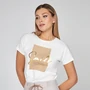 Хлопковый блузон получился в равной степени комфортным и красивым. Спереди изделие украсили принтом с мерцающим элементом. Модель с цельнокроеными короткими рукавами будет интересным вариантом как и для офиса, так и в повседневном гардеробе.